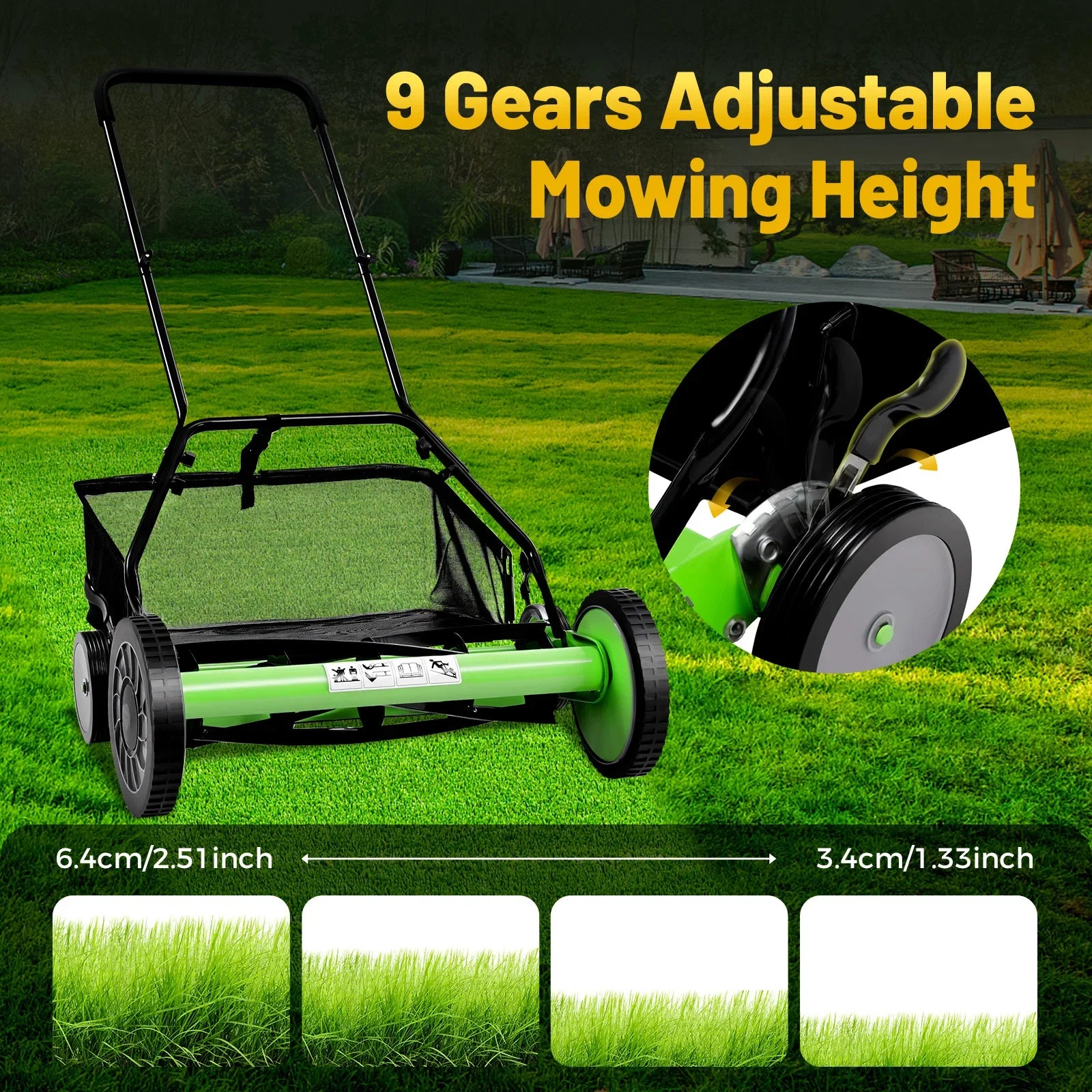Walk-Behind Lawn Mower with 65 Manganese Steel Blades